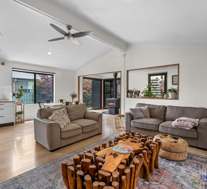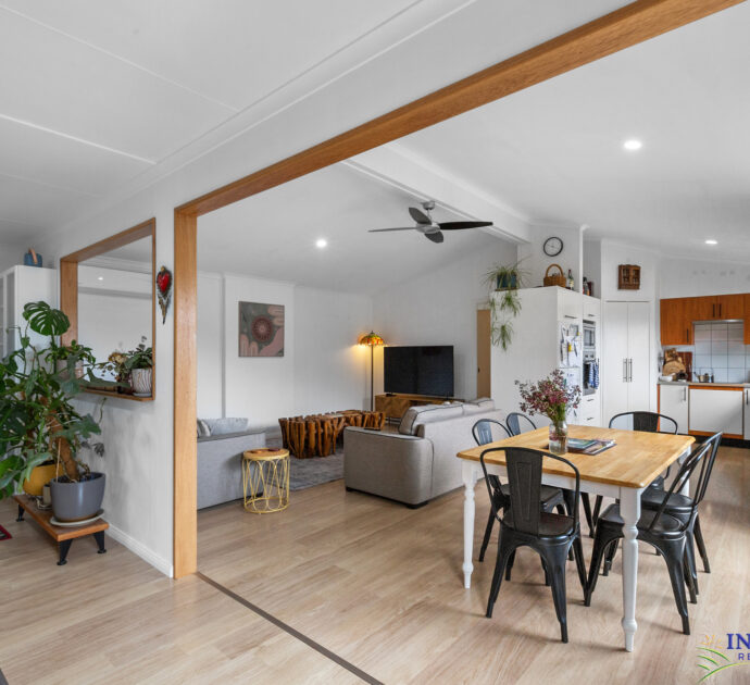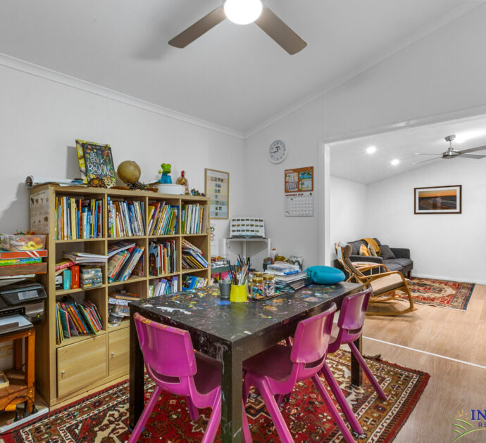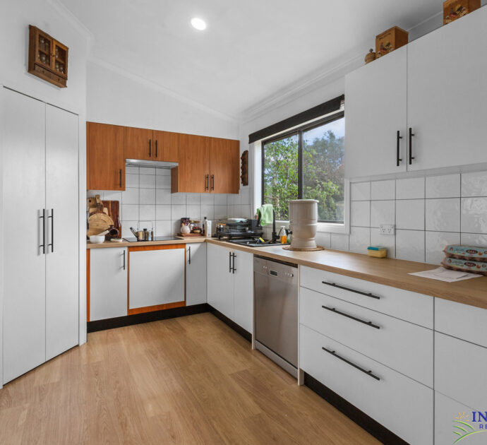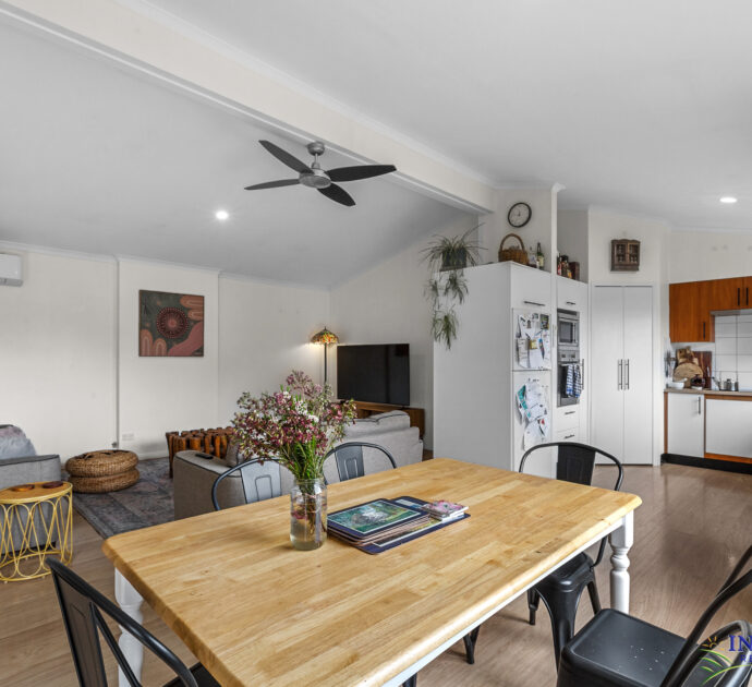 Four bedrooms, large open plan living, sitting, dining and kitchen area. Large outdoor/indoor covered entertaining area. Large double garage with cement floor and power, complete with “man/lady cave”. Established gardens with chooks run producing eggs for the family, neighbours and friends. 50,000 litres of rainwater storage plumbed to the home. Automated irrigation system for lawns and gardens with the choice of rainwater or mains water.